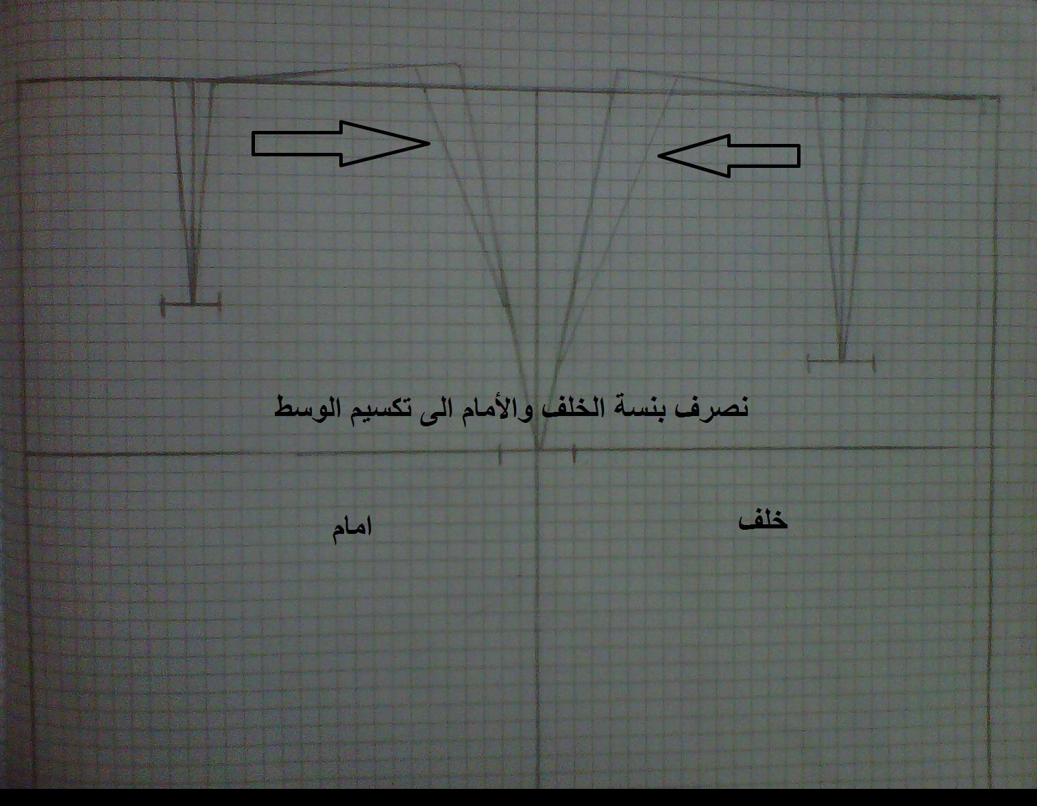 لتحديد مكان الكسرات ( نلاحظ بالموديل أن القصات اقرب للجنب )