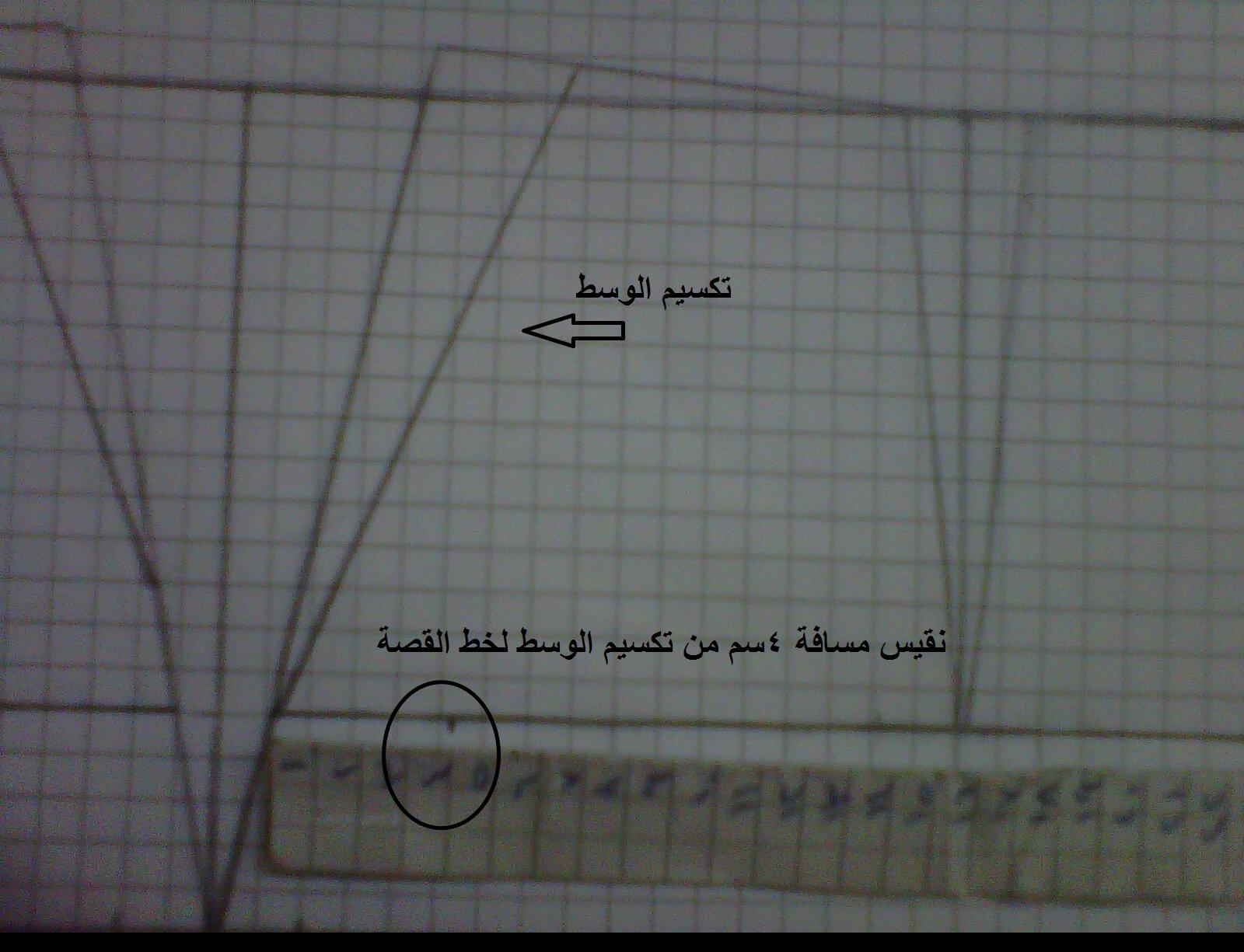 نبتعد من تكسيم الوسط لخط القصة 4سم ونحدد نقطة