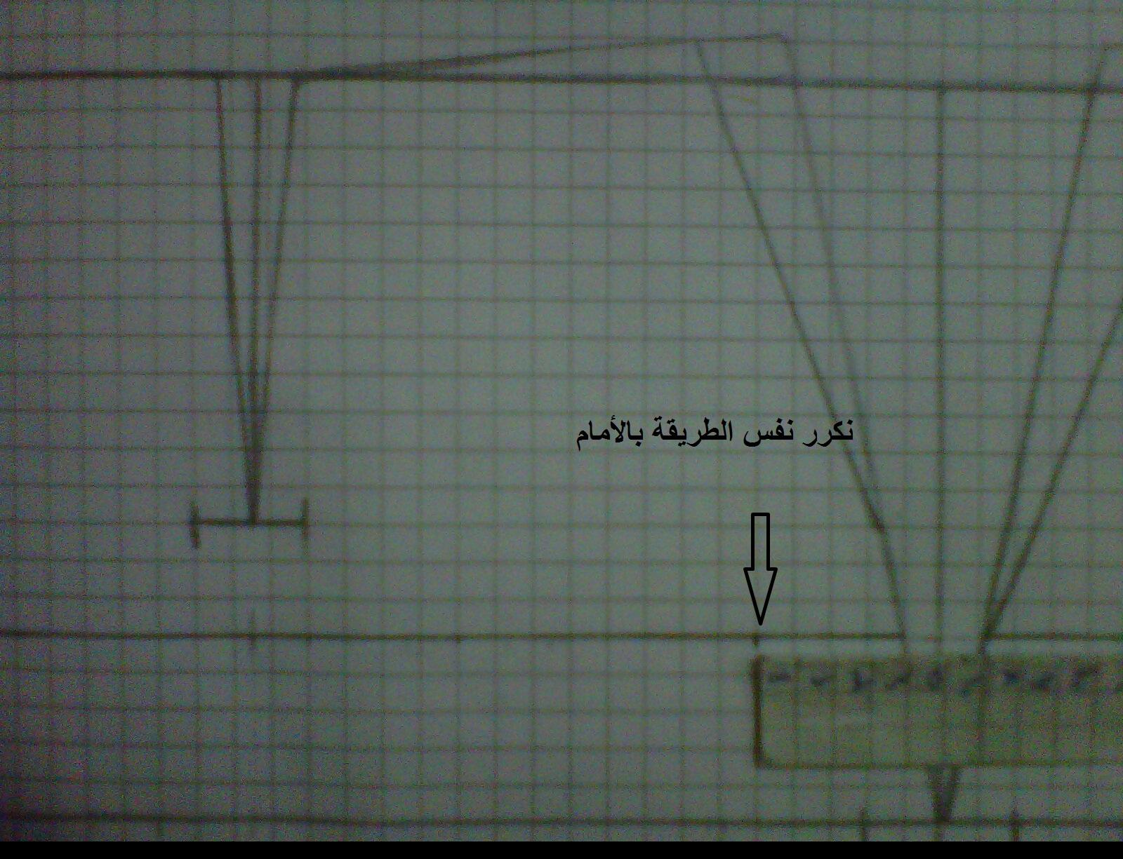 نلاحظ كيف يكون مكان الكسرات ( حددتها من تكسيم الوسط حتى يكون شكلها مع الجنب أنسيابي ومناسب )