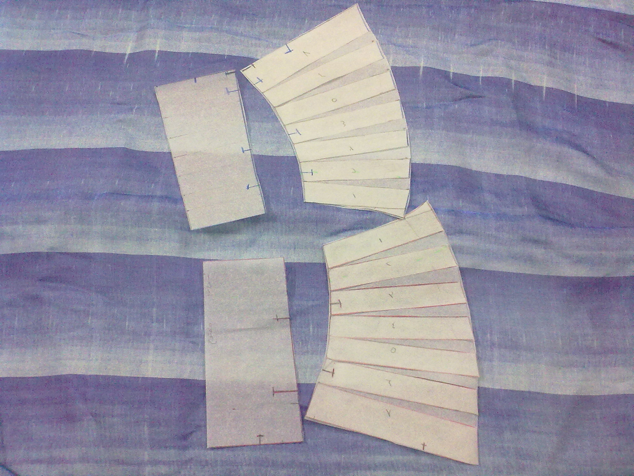 طبعا ترسمين الباترون الاساسي والتكسيم مثل ماهو مايتغير . أذا بتسوين نفس موديل الأمام بالخلف تصرفين البنس بالقصة وأذا كان مثل ماسويت تتركين البنس بدون تصريف تخيطينها بنس عاديه