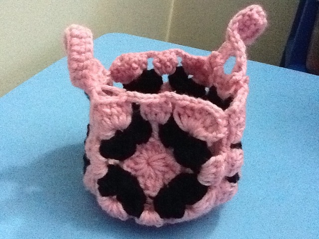نعمل 6 سلاسل ونشبكهم بمنزلقة ونرتفع 3 سلاسل كاول عامود ونعمل عمودين وبعدهم 3 سلاسل كاول زاوية ونواصل على الطريقة الى ان تصبح 4 مجموعات مكونة من ثلاث اعمدة و4 زوايا