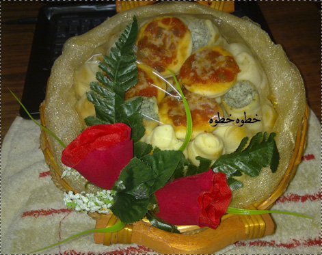 ملحوظة : مااستخدمت التل شفته مش مناسب مع شكل الصحن ... ملاحظتي صح وفي مكانها ؟ وإلا وش رأيك ياأبلة ؟