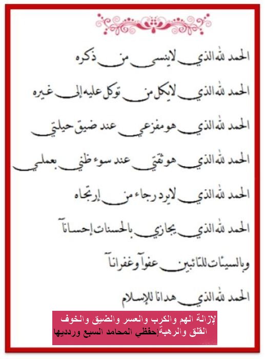 ان شاء الله احفظ هذي المحامد وارددها والله يعني ويقويني في طاعته واياكن ووالدينا ومن نحب وجميع المسلمين والمسلمات