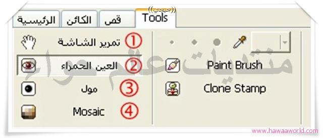 ثم بالماوس أحيطي على العين ثم اتركي الماوس.. ستجدين أن الاحمرار قد اختفى..