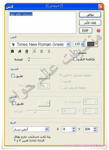 بعد الضغط على القلم الأصفر ستظهر لك هذه النافذة قومي بكتابة الجملة المراد كتابتها ( منتديات عالم حواء) مثلا.. في المكان المحدد..
