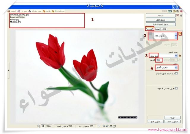 وهي أننا نستطيع أن نقوم بتحرير عدة صور بضغطة زر واحدة وبدون أي جهد, أي نستطيع مثلا أن نقوم بتصغير 50 صورة دفعة واحدة وتنسيقها والكتابة عليها وعمل إطارات لها..