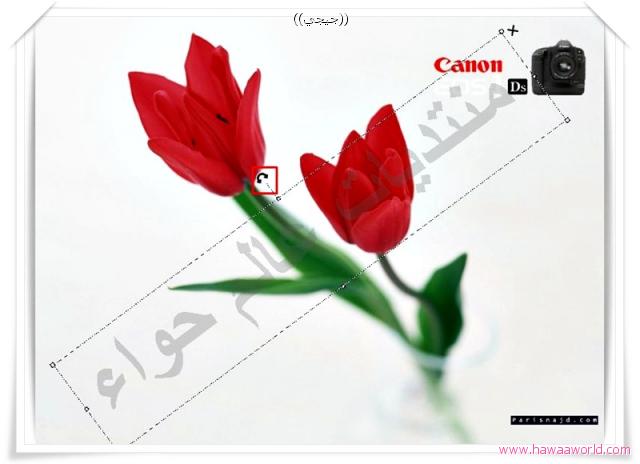 ولعمل دوران للعبارة حركي السهم المستديركما في الصورة.. وللتكبير اسحبي الكلمة من زواياها..