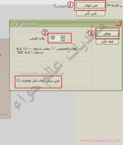 5- تغيير الوقت: هذا الخيار لتحديد وقت العرض بين صورة وأخرى..