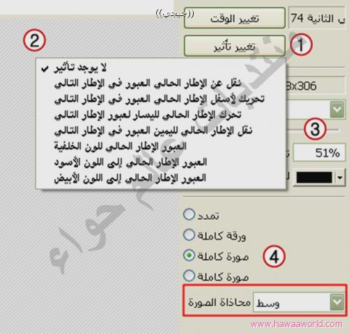 تغيير التأثير: هذا الخيار لعمل تأثير في طريقة عرض الصور بين كل واحدة والأخرى..