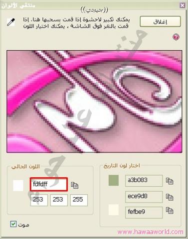 ثم وضع المؤشر عليه ليخرج لك كود اللون كما في الصورة..