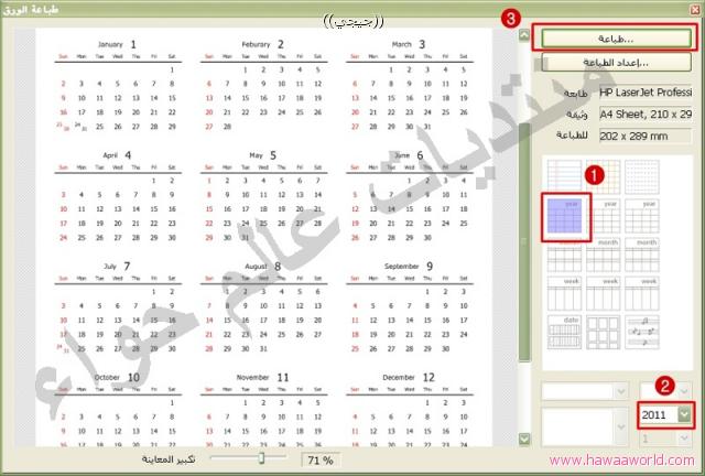 يتم بهذا الخيار طباعة ورق مسطر أو جداول أو تقاويم حسب الخيارات الموجودة في البرنامج.. مع إمكانية تغيير الألوان..