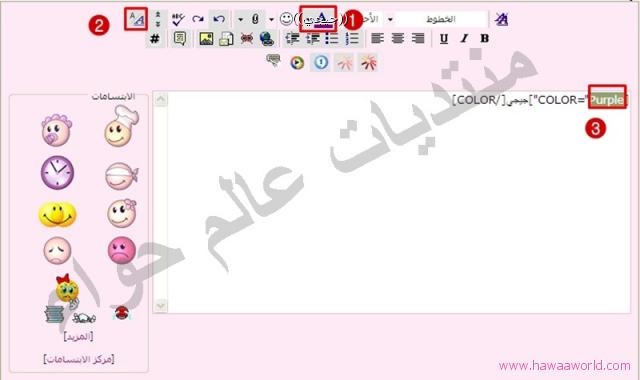 ولتلوين نصوصك في المنتدى اتبعي الآتي..