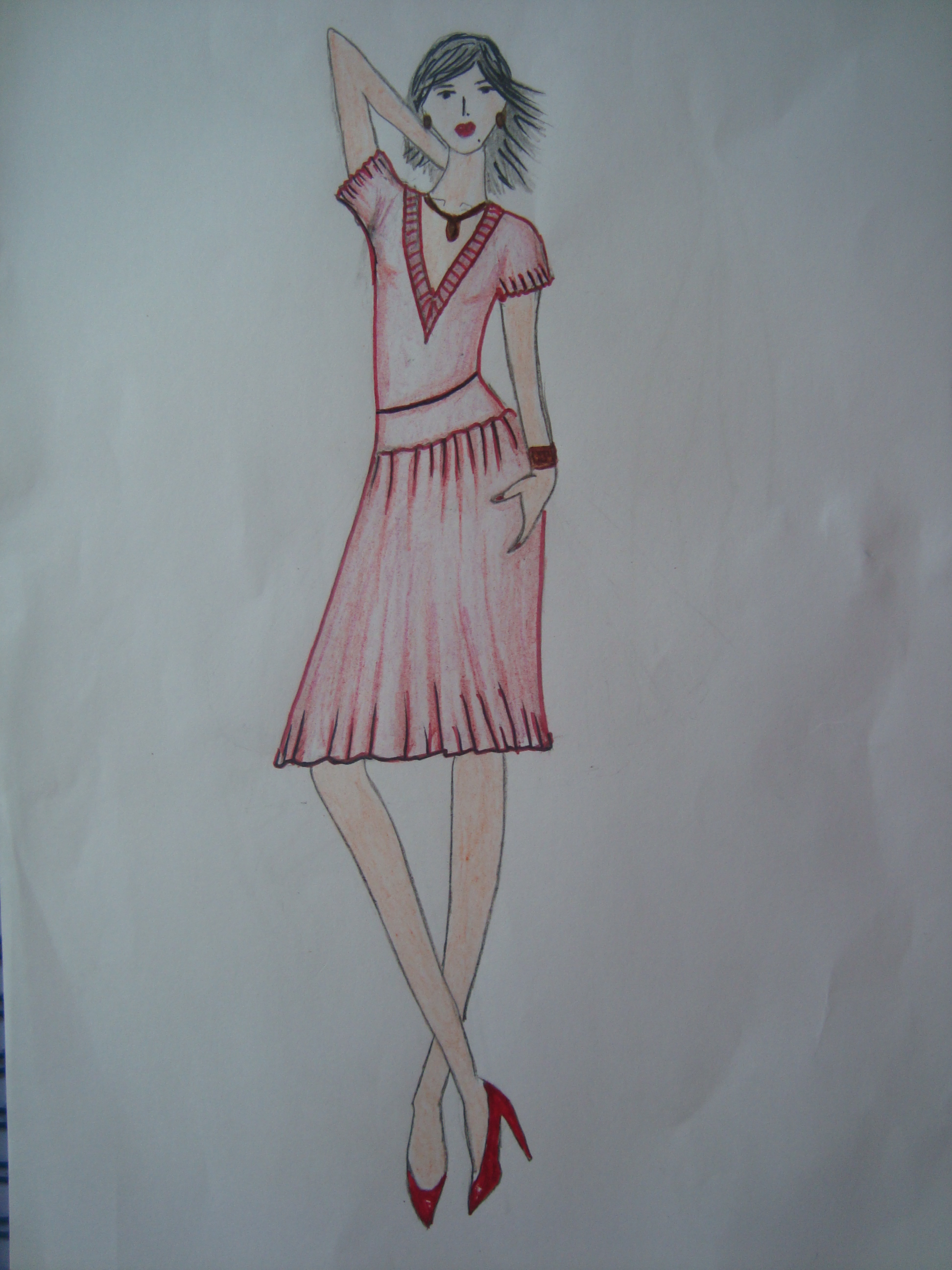 هذا تصميمي جربت فستانين لاني اتغيبت في التلوين حاولت اغطي الواجب الاول