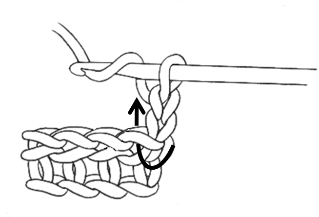 عندما ننتهي من السطر الأول نرتفع غرزتين وندخل في الغرزة الثالثة مباشرة
