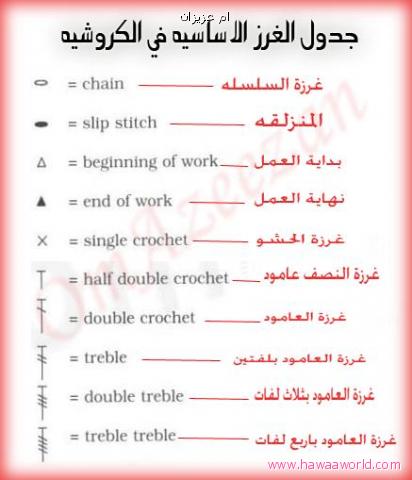 وهناك نقطة البعض لايعرف غرزة العامود إلا بغرزة البريد فيجب أن يكون عندك فكرة بأسمها هذا حتى لاتتلخبط عليك الأمور