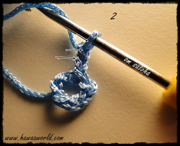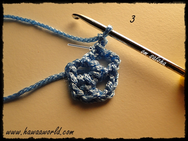 نرتفع للأعلى ثلاث غرز سنسال لنبدأ العمل ..في سطر جديد..