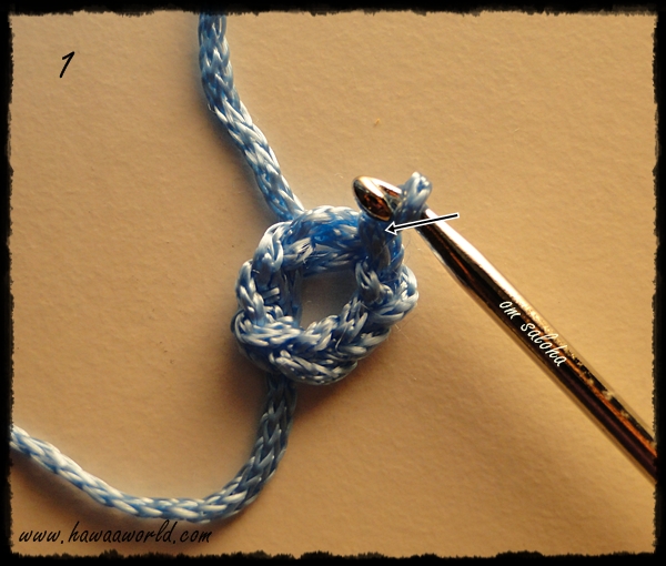 نقوم بعمل 6غرز سلسال وهي غرزة الدرس الأول نغلق الدائرة بغرزة منزلقة ..