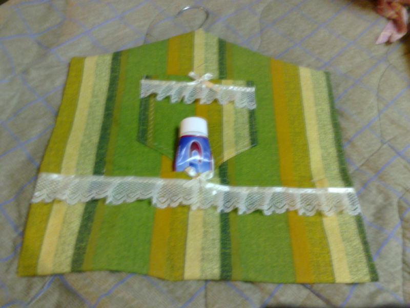 ترى فيه جيوب حق فرش الأسنان يعني المعجون يكون في أنص أو في الجيب اللي فوق والفرش تكون أربع على اليمين وأربع على اليسار يعني ياخذ ثمان فرش أسنان ويتعلق جنب المغسله وش رايكم في الفكره حلو عجبتكم أذا عجبتكم بحطلكم الشرح فديتكم وفديت فتوش الغاليه هي اللي شجعتنا على هالشغل الروعه