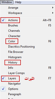 متحمسين للدروس :7_5_127:بسرعة قبل لا نبطل خخخ .. الأخت(أحبار من ذهب) س1.روحي لقائمة الأدوات وكليك يمين على أداة التدرج (مربع وفيه تدرج اللون من فاتح لغامق)يالله عالوصف:biggrin: وبعدها بتظهر لك اداة الدلو اضغطيها وبتتحول اداة التدرج للدلو ونفس الطريقة اذاتبين تسترجعين أداة التدرج.. س2.روحي لقائمة windowبتحصلينها فوق .. ومن هنا تسترجعين اي بوكس تبينه او تبين تخفينه بكيفك..مثلا صندوق الليرات تروحين للقائمة وتظغطين على كلمة layersوبيظهر لك الصندوق واي صندوق ثاني تحصليه بنفس الطريقة.. تم الشرح والحمد لله :icon28:متحمسين للدروس :7_5_127:بسرعة قبل لا نبطل خخخ .. الأخت(أحبار من ذهب) س1.روحي لقائمة الأدوات وكليك...