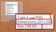وتظهر لك كل معلومات الصورة , الصيغة المساحة الحجم زي كذا