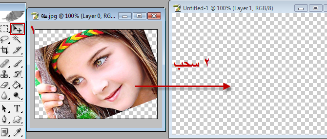 ميلي الصورة بعدين أختاري أداة النقل أو التحريك وأسحبي الصورة لمساحة العمل زي كذا