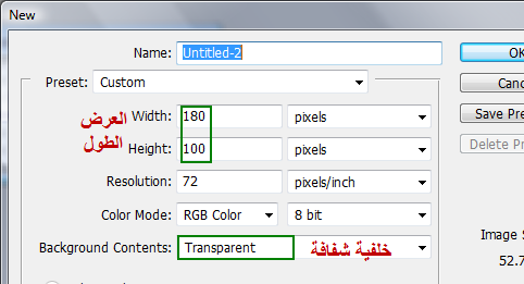 تفتح لك هالنافذة حق القياسات خليها 180×100 وتكون شفافة ضروري