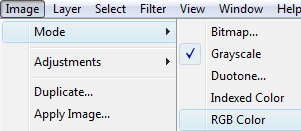 ارجعي لايميج واختاري مود مرة ثانية واختاري RGB color
