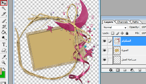 زي كذا ,, شوفي أداة التحريك اللي تسحبي بها محدد على اليسار فوق