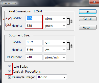 وإذا تبغي تغيري العرض لحاله والطول لحاله بقياسات انت تختاريها على كيفك شيلي علامة الصح من الخيارين المحددة تحت