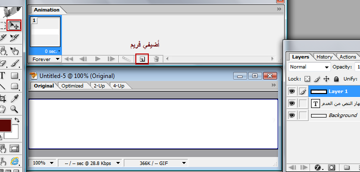 حددي أداة التحريك وبعدين أضيفي فريم جديد