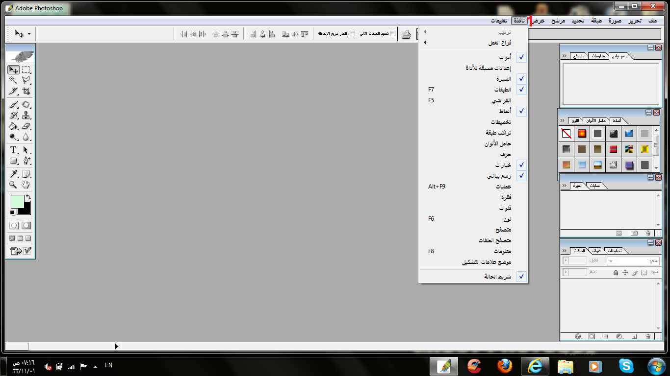 عندي بالفوتوشوب مربع الطبقات او الليرات مو موجود على صفحة العمل كيف الطريقه ؟