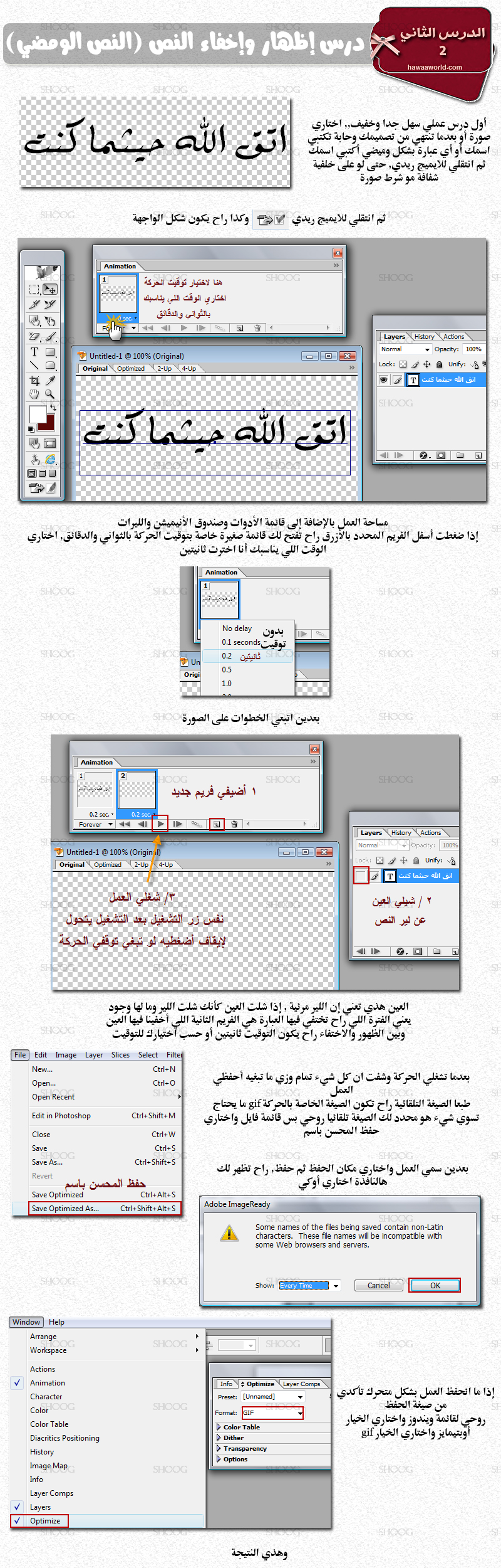 وهو أسهل من الفوتوشوب بكثير , كل المهم فيه معرفة الآلية أو مبدأ الحركة فيه كيف تكون, إذا فهمت الطريقة راح تعرفي إنت بعدين تخترعي الحركة اللي تعجبك سواء على النصوص أو الصور