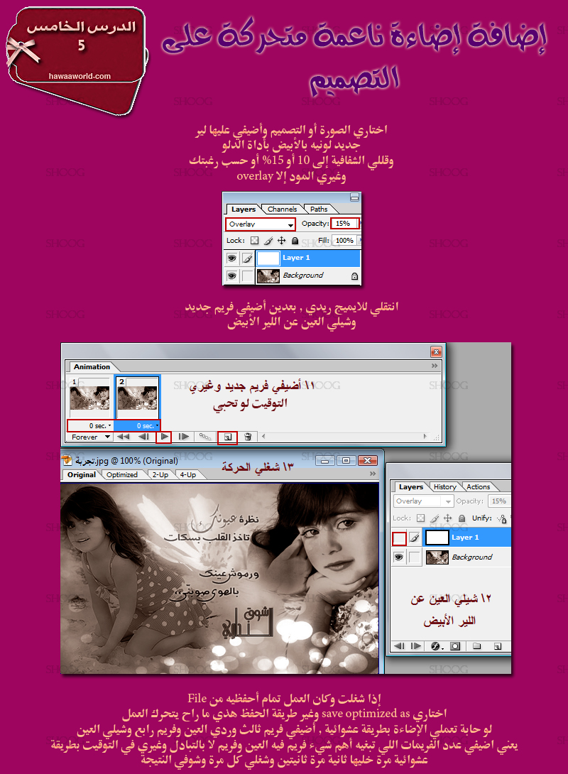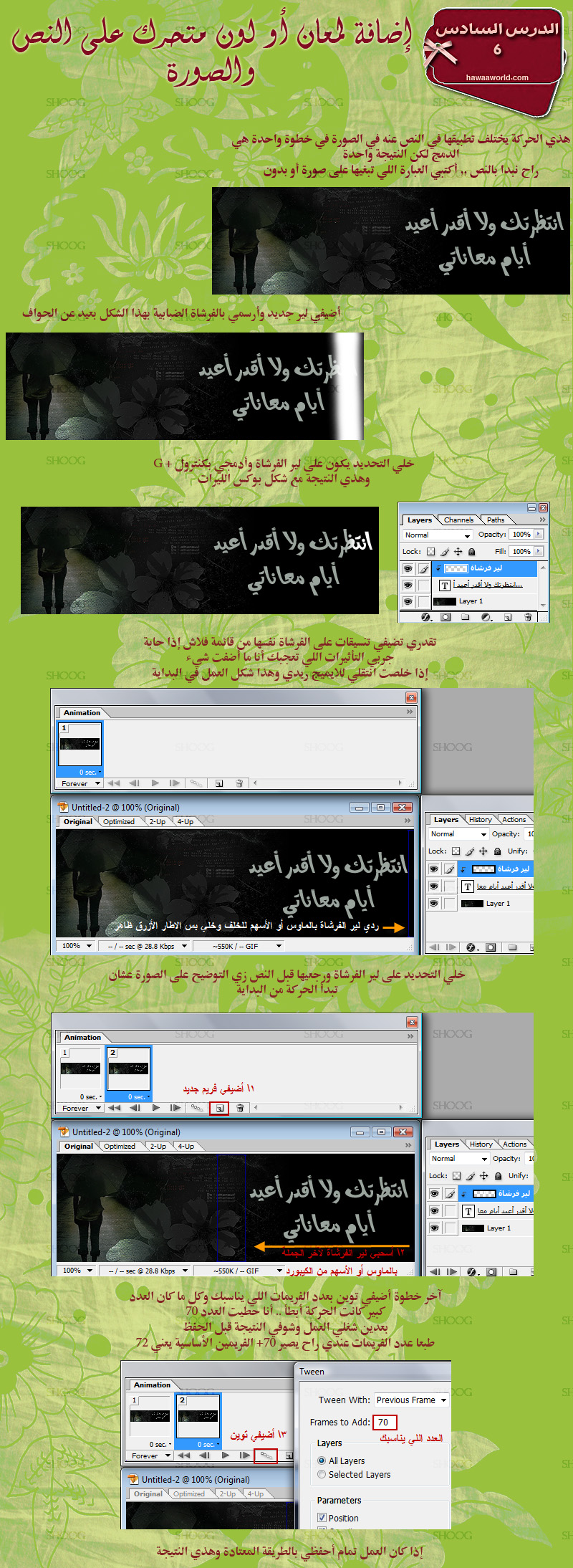 السلام عليكم ورحمة الله ,, الدرس الجديد والأول بإذن الله في جزئية الايميج ريدي صباح الأحد .. بالنسبة لنتائج أفضل التطبيقات في جزئية الفوتوشوب راح تطرح بإذن الله على هذا الرابط http://forum.hawaaworld.com/showthread.php?t=3310794&page=3 أرسلت للمشرفة أفضل التصاميم وهي المسؤولة عن طرحها وهذي إعادة رفع للدرس الأخير مدري ليه تصغر الصور ,,السلام عليكم ورحمة الله ,, الدرس الجديد والأول بإذن الله في جزئية الايميج ريدي صباح الأحد .. ...