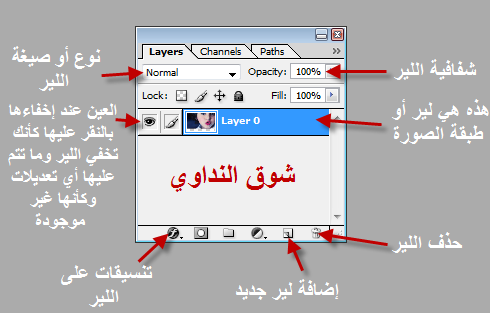 أول ما تفتحي صورة أو عمل للشغل عليه تظهر لك طبقة الصورة بهذا الشكل