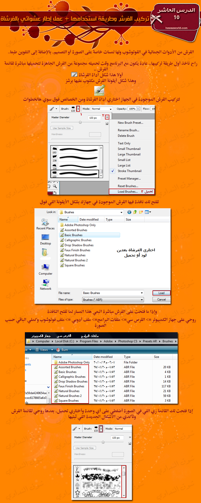 إذا حملت وفتحت الضغط عن الملف راح تلاحظي كل ملف فيه أيقونة فرش واحدة لكنها تحتوي مجموعة بداخلها لو ركبتيها راح تشوفيها