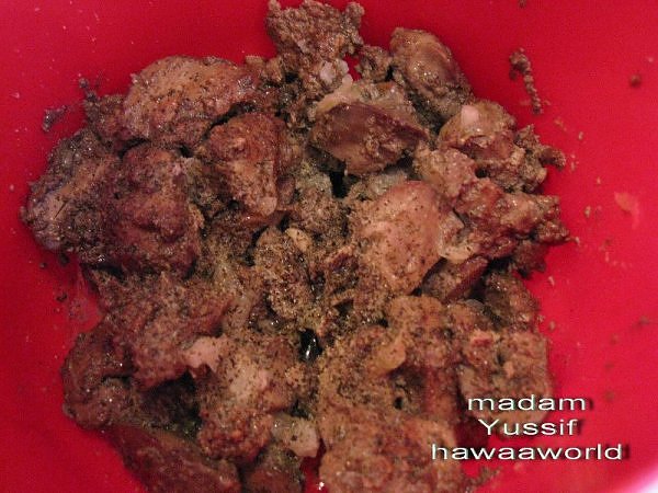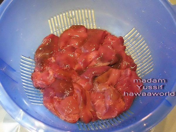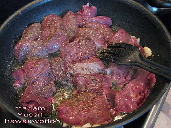 بعد ما يحمر لونه ..اغسلي الكبدة و اضيفيها وعليها التوابل