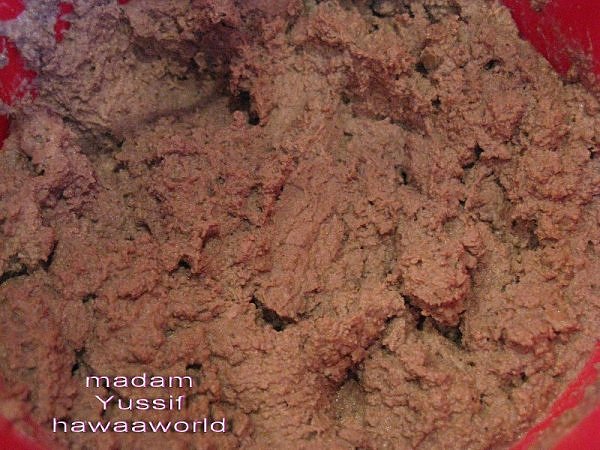 بعد النضوج ..ضعيها في اناء وافرميها بآلة الفرم ..مثل براون