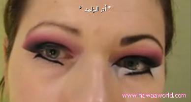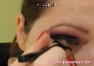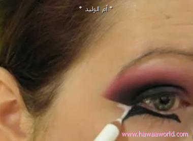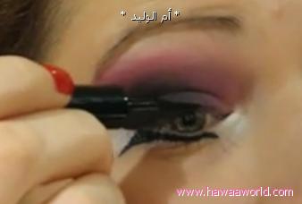 مع الامساك بالبشره ما تحت العين لفردها و لرسم مستقيم واضح