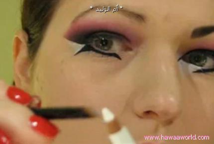 نرسم بقلم الكحل الابيض داخل فتحة العين الاماميه