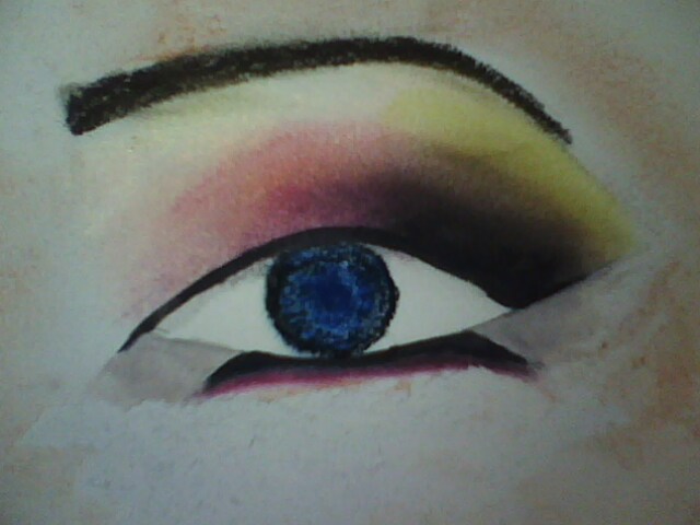 هذا تطبيقي على الورق قيميني يا ابلتي وعذرا لاني رسمت الحواجب بالالوان الطباشيريه قبل لا احط الضل وبعد ما حطيت الضل خرب علي الاضائه بس الرسمه طلعت حلوة صح ~~~ثقه خخخ