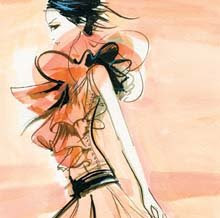 *ممكن أن تستخدمي بعد ذلك طريقة القالب و جمع صور لموديلات و التدرب بالورق الشفاف على رسمها .. لاحظي الثنيات و الكسرات و خطوط انسدال القماش و انسخيها كما هي في الصورة ..