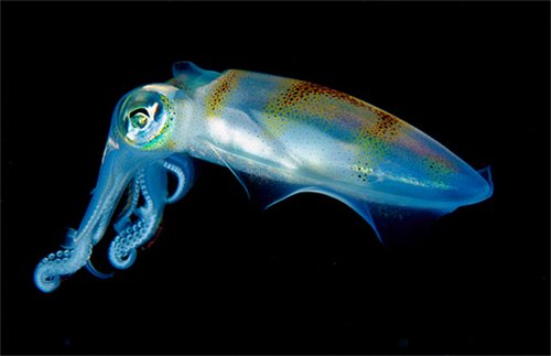حيوان الحبار البحري يتوهج باللون الأحمر والأرجواني، يوجد أكثر من 300 نوعاً مختلفاً من هذا الحيوان تعيش في البحار.