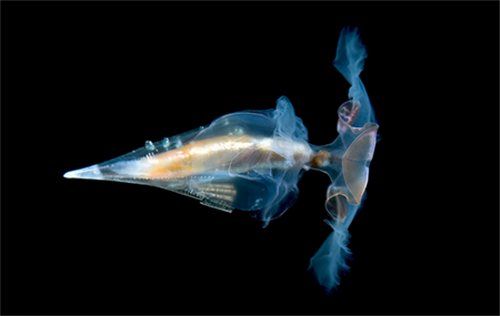 حلزون بحري شفاف لديه القدرة على أن يأخذ أشكالاً متعددة، وفي هذه الصورة يأخذ شكل "قلب".