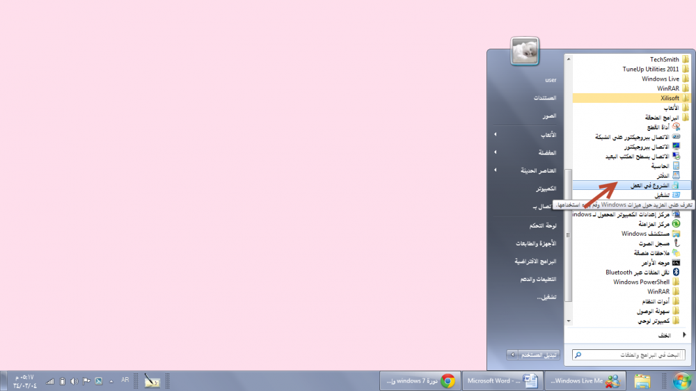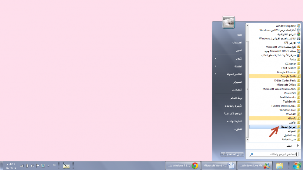 شوفي حبيبتي اول شي افتحي قائمة ابداء ثم كافة البرامج اختاري منها البرامج الملحقة