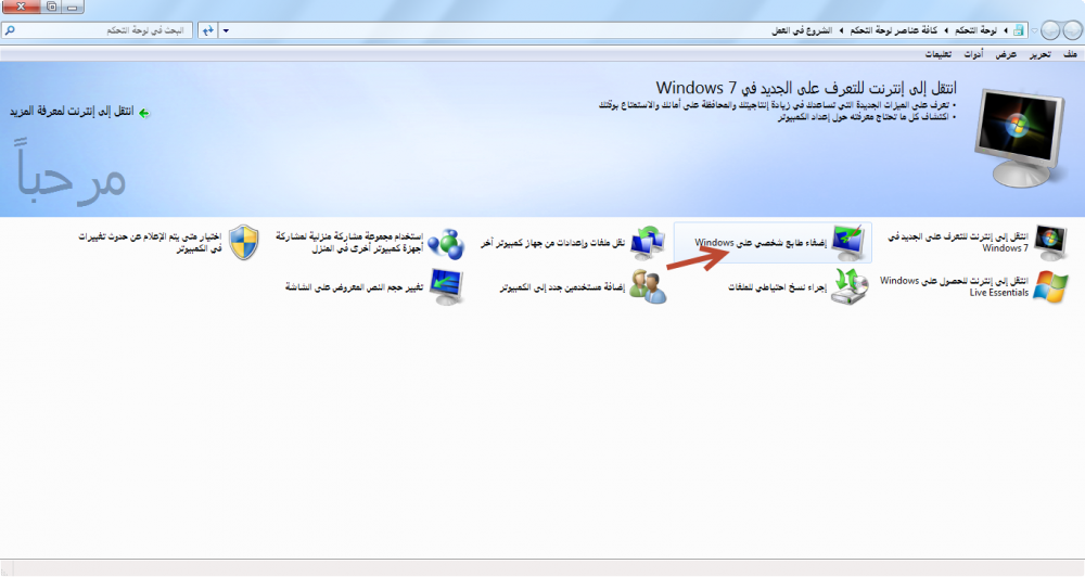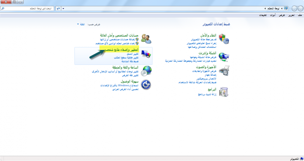 او من لوحة التحكم اضغطي على كلمة المظهر واضفاء طابع شخصي