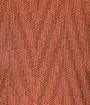 السطر الثاني: غرزة عدلة * غرزة مقلوبة و غرزة عدلة و 7 مقلوبة و 1عدلة و 1 مقلوبة و 1 عدلة (يكرر ما بين العلامتين)*