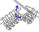 ثم نغرز الابره اليسري تحت الغرزه اللي سلتناها