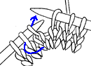 انقلي الغرزه من الابره اليسري للابره اليمني من غير ماتشتغليها وبعدين كرري مع الغرزه التاليه لها علي الابره اليسري