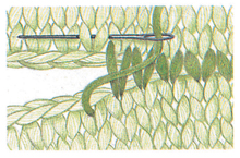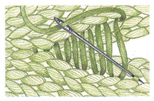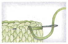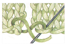 والطريقه بانك بتغرزي ابره الخياطه تحت الخيط الافقي بين اول غرزه في السطر وثاني غرزه وبعدين اغرزي الابره تحت الخيط المقابل من القطعه الاخري واستمري في الشغل هكذا من ناحيه لناحيه