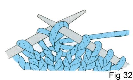 الخطوه 4- اسحبي الابره اليمني بالغرزه واطلعي بيها وكده عملتي اول غرزه عدل